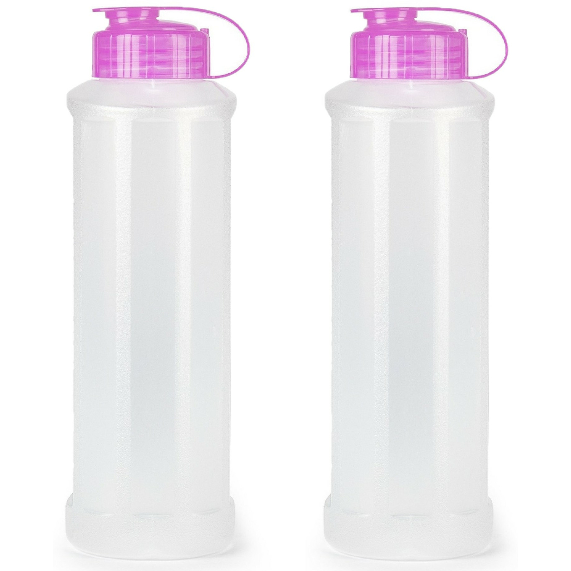 Drinkfles/bidon/waterfles 2x met een inhoud van 1600 ml, gemaakt van transparant kunststof met afsluitdop in het roze. Handige multifunctionele drinkfles voor sapjes en water. Voor recreatie en/of sport. Formaat: 30 x 9.5 cm. Kan in de vriezer en magnetron gebruikt worden.