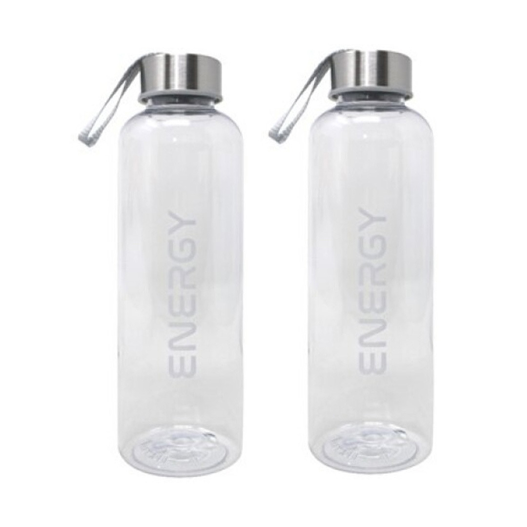 2x drinkfles/bidon/waterfles met een inhoud van 570 ml, gemaakt van transparant kunststof met een RVS afsluitdop. Handige multifunctionele drinkfles voor sapjes en water. Ideaal voor recreatie en/of sport. Formaat: ca. 6,5 x 21 cm.