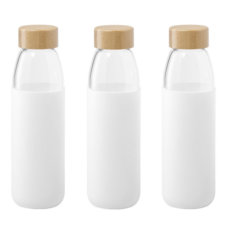 Glazen waterfles/drinkfles – 3x – siliconen bescherm hoes Wit – 540 ml – Sportfles – Bidon