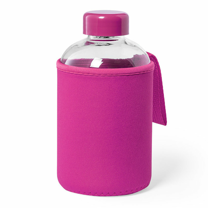 Glazen waterfles/drinkfles softshell bescherm hoes – roze – 600 ml – Sportfles – Bidon