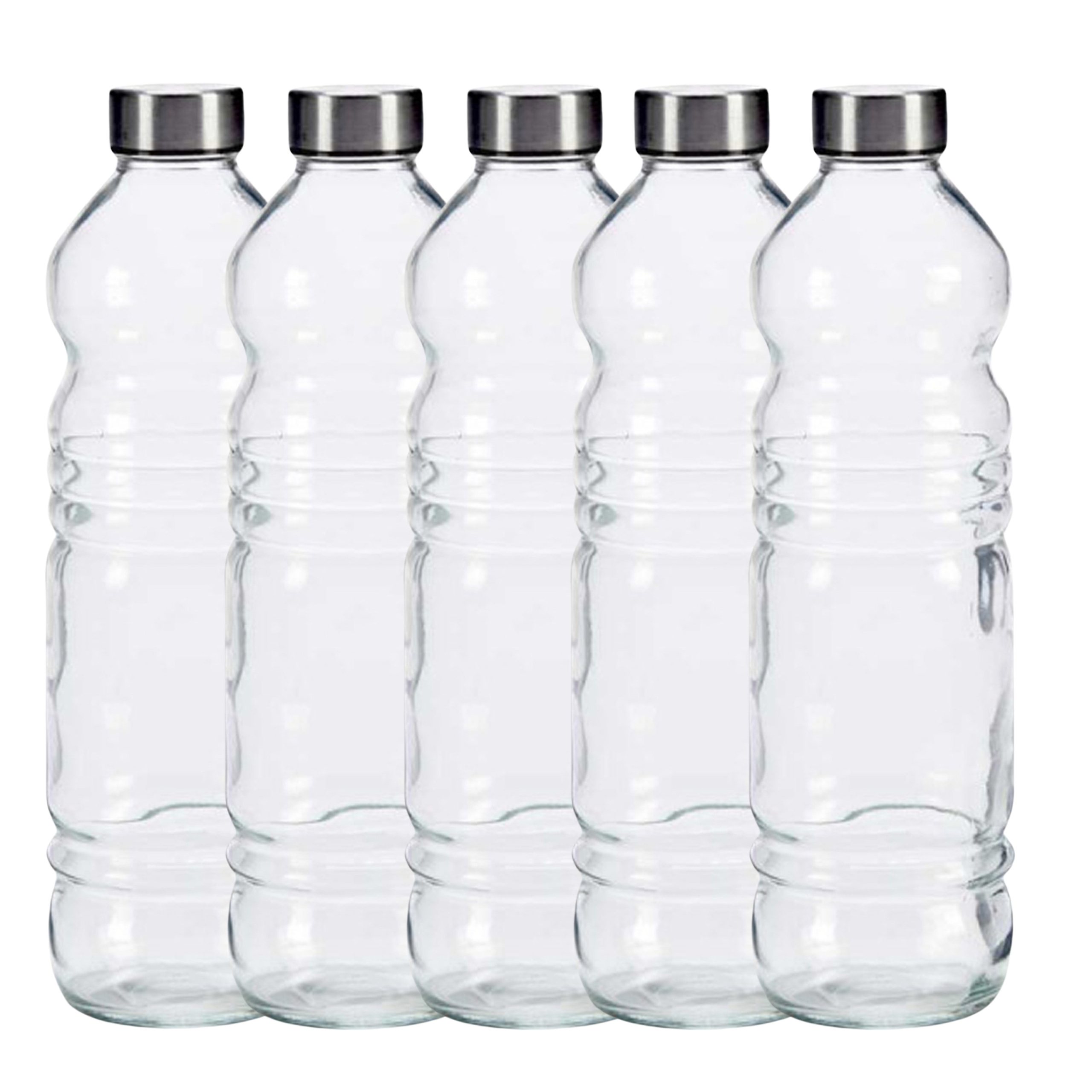 Glazen waterfles/drinkfles/sportfles – 5x – helder transparant – met RVS dop – 1100 ml