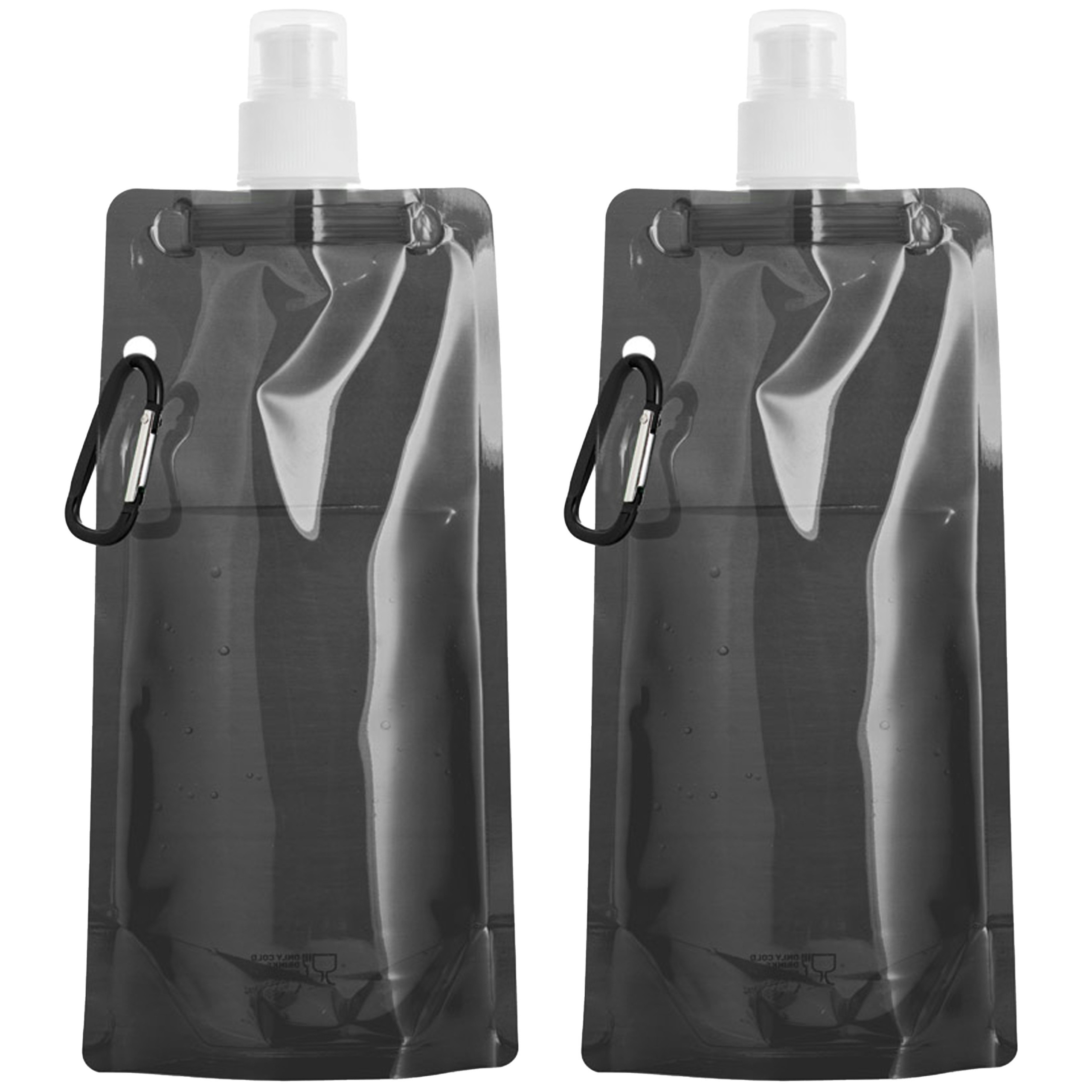 Opvouwbare Waterfles – 2x – zwart – kunststof – 460 ml – schroefdop – karabijnhaak – waterzak