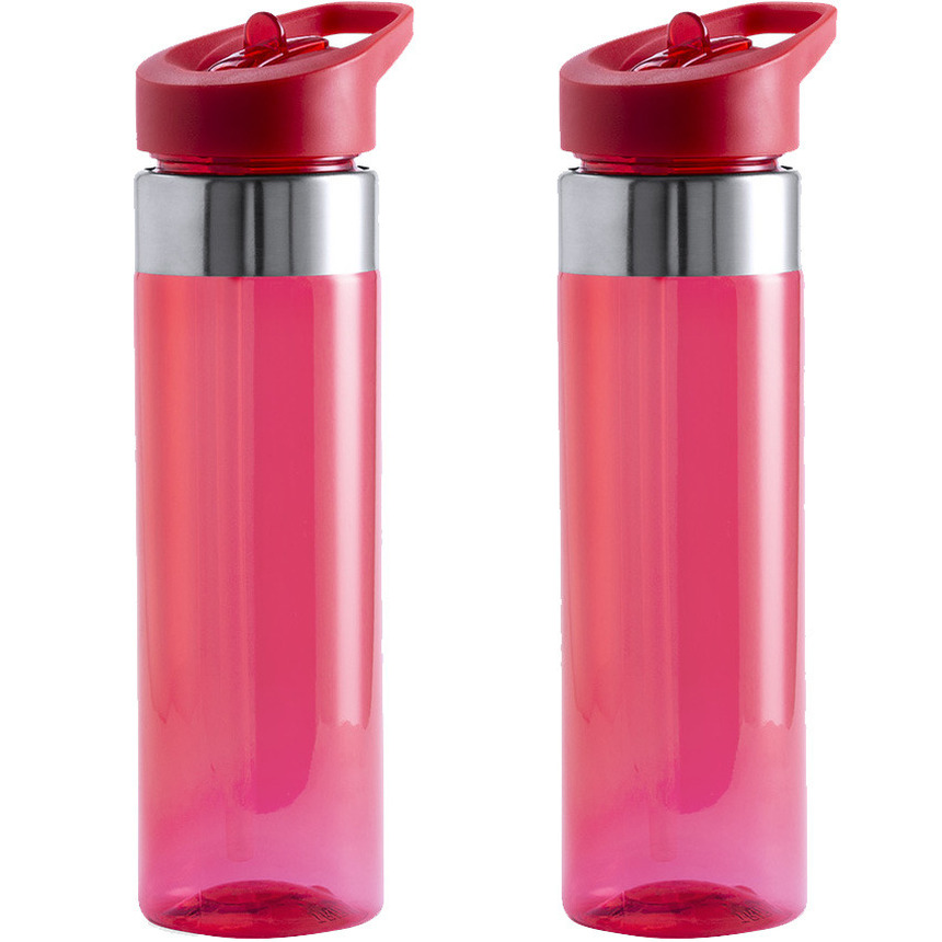 Set van 2x stuks transparante rode hoge kwaliteit sport bidon/drinkfles/waterfles 650 ml van Triton kunststof. Eenvoudig openingsmechanisme en draaidop. Formaat: 25 x 6.5 cm. Drinkflessen/waterflessen voor sport, recreatie of onderweg.