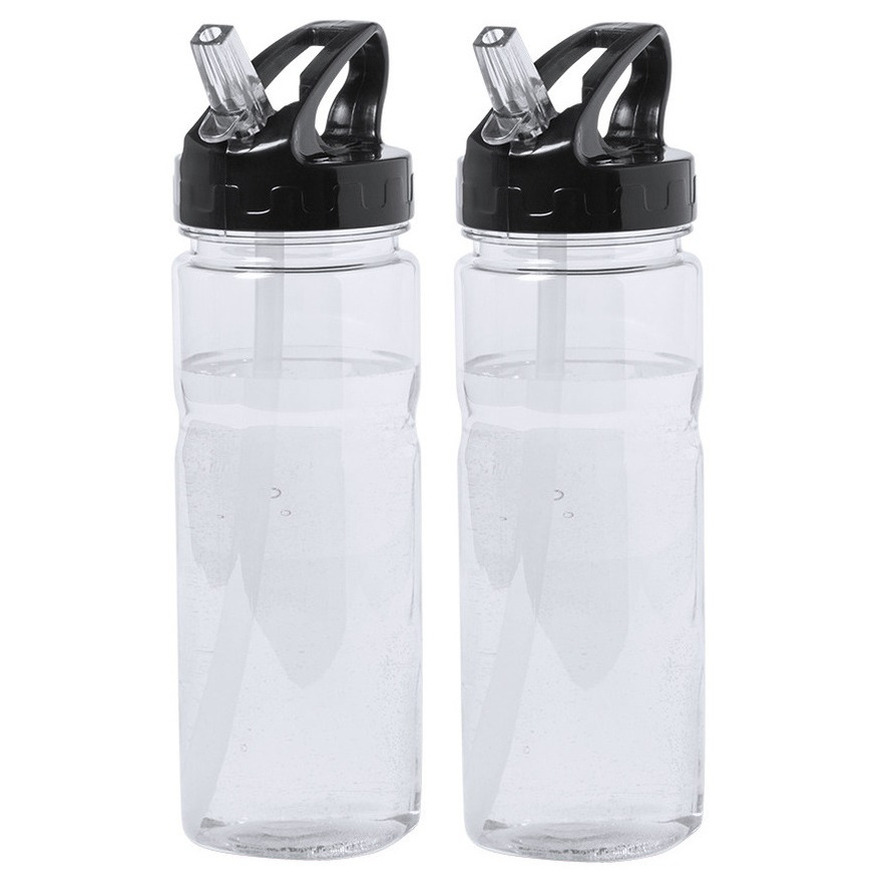 Waterfles – 2x – 650 ml – Transparant – Kunststof – Drinktuit – Sportfles/Bidon