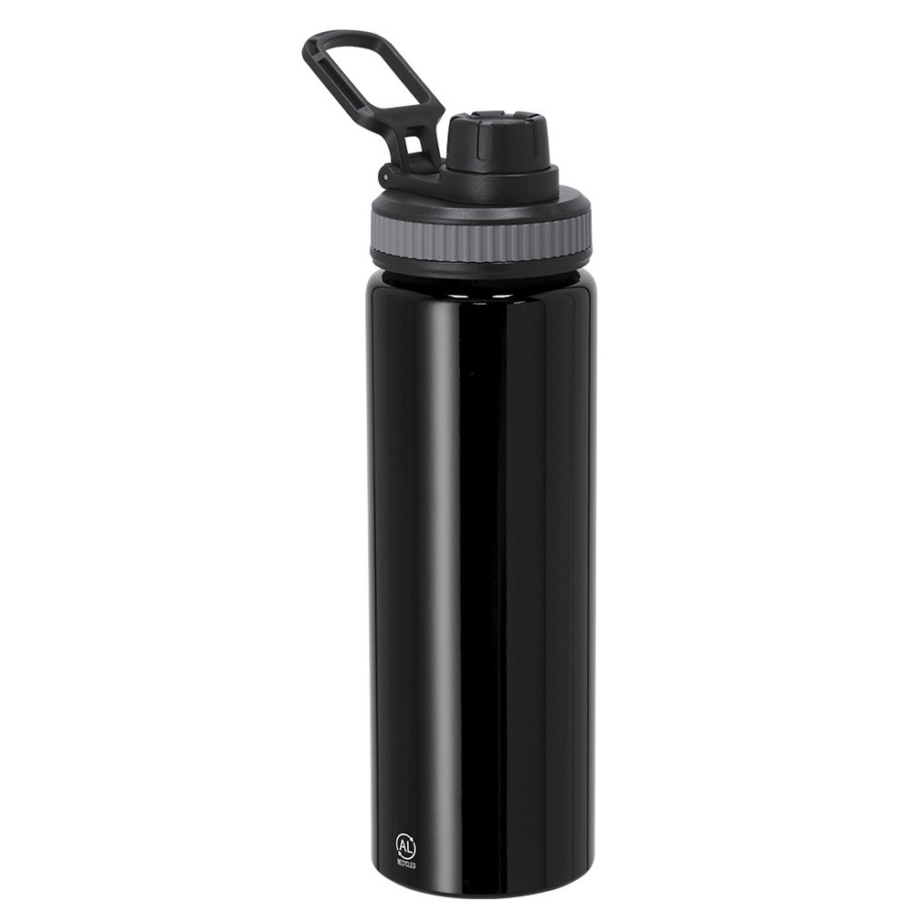 Handige gschwartze waterfles Fitmaster van het merk Bellatio Design, in de kleur metallic zwart heeft een lekvrije, kunststof schroefdop. Hierdoor is deze waterfles handig voor onderweg of te gebruiken als bidon/sportfles in de sportschool of op het sportveld. Met een formaat van ca. D8 x H24 cm en een inhoud van ca. 800 ml, is er voldoende capaciteit voor water of een een verfrissend sportdrankje, om gehydrateerd te blijven. Deze sport bidons en vrije tijd drinkflessen zijn geschikt voor zowel kinderen en volwassenen. Materiaal: aluminium en kunststof.