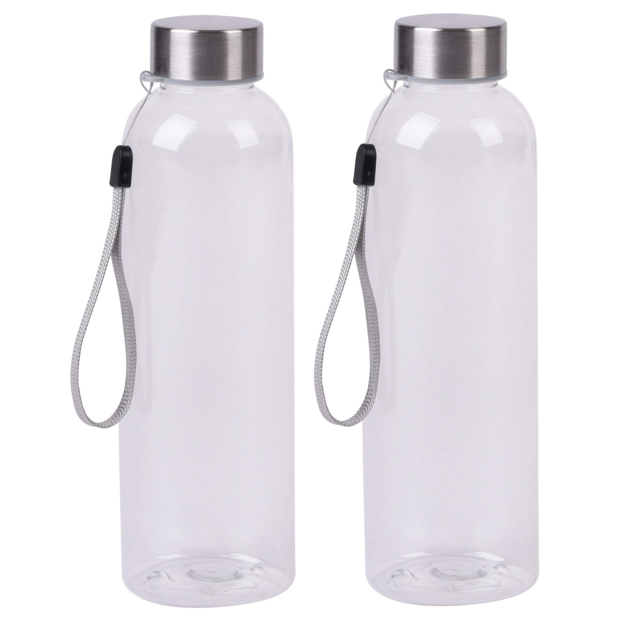 2x deze handige waterfles Olympic van het merk Bellatio Design, in de kleur transparant heeft een lekvrije, rvs schroefdop. Hierdoor is deze waterfles handig voor onderweg of te gebruiken als bidon/sportfles in de sportschool of op het sportveld. Met een formaat van ca. D6 x H20 cm en een inhoud van ca. 500 ml, is er voldoende capaciteit voor water of een een verfrissend sportdrankje, om gehydrateerd te blijven. Deze sport en vrije tijd drinkflessen zijn geschikt voor zowel kinderen en volwassenen.