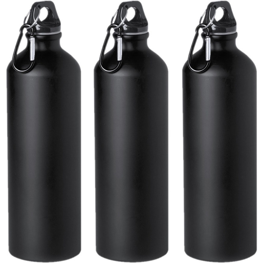 Waterfles/drinkfles Thor – 3x – zwart – aluminium – schroefdop – karabijnhaak – 800 ml – Sportfles/B