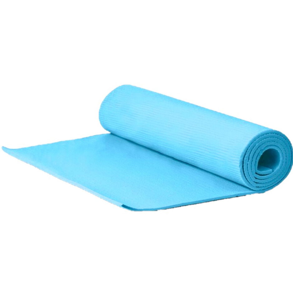 Yogamat/fitness matje in het blauw. Afmetingen: 180 x 51 x 1 cm. Materiaal: EVA rubber. Basic yogamat met een raster profiel voor comfortabele ondersteuning met een redelijke grip. Makkelijk te reinigen na het sporten met een vochtige doek.